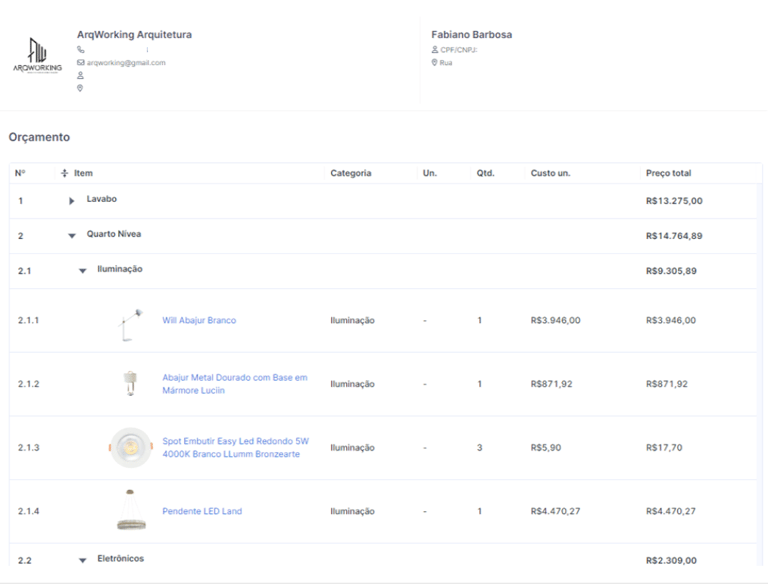 Entregaremos a lista de compras com todo o material que apresemos no 3D pra você executar.